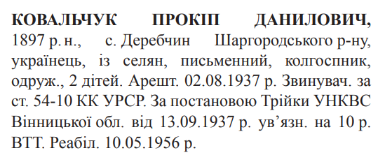 Реабілітований: Вінницьким облсудом 10.05.1956 Реабілітовані історією