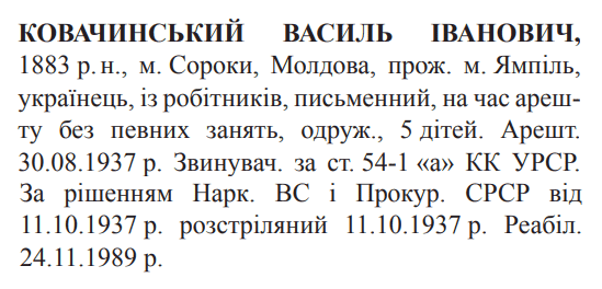 Василь Ковачинський розстріляний 11.10.1937