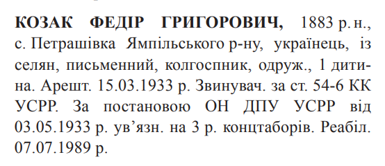54-6 КК УССР. ОН при колегії ГПУ УССР засуджений до 3 років таборів