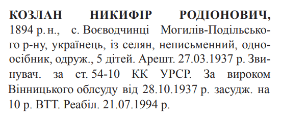 Реабілітований: Вінницькою облпрокуратурою 21.07.1994 Реабілітовані історією
