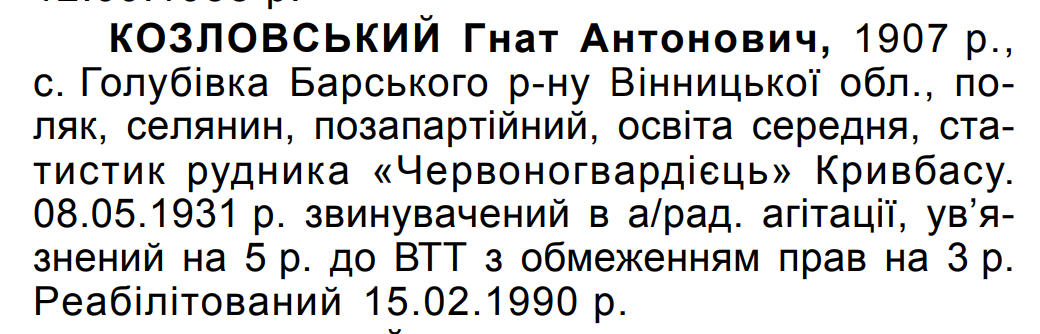 Реабілітований: 15.02.1990 Реабілітовані історією