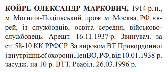 Реабілітований: Військовою прокуратурою Ленінградського ВО 26.03.1996 Реабілітовані історією