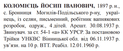 54-1 "а" КК УССР. Трійкою УНКВС Вінницької обл. засуджений до 10 років ВТТ
