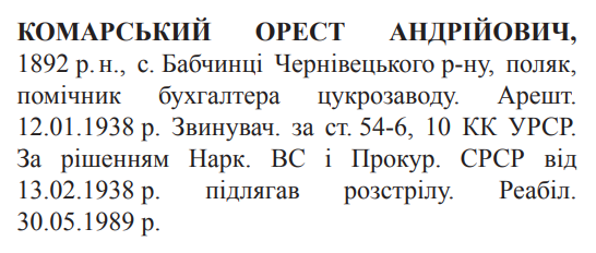 Розстріляний в м. Вінниця 03.04.1938