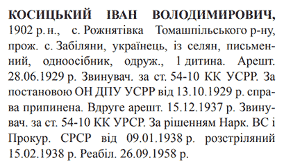 інформація відсутня. Особливою нарадою ОДПУ справу припинено