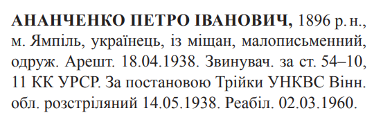 Петро Ананченко розстріляний 14.05.1938.