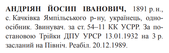 Реабілітований: Вiнницькою облпрокуратурою 20.12.1989 р. Реабілітовані історією