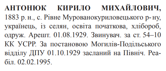 Реабілітований: Вiнницькою облпрокуратурою 02.02.1995 Реабілітовані історією