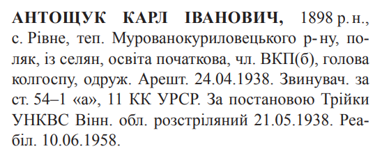 Реабілітований: трибуналом ВО 10.06.1958 Реабілітовані історією