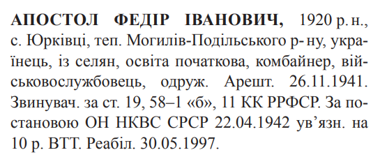 Реабілітований: 30.05.1997 Реабілітовані історією