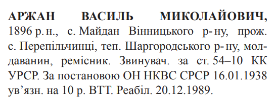 Реабілітований: 20.12.1989 Реабілітовані історією