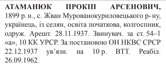 Реабілітований: Вінницьким облсудом 26.09.1962 Реабілітовані історією