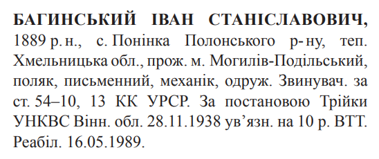 Реабілітований: Вiнницьким облпрокурором 16.05.1989 Реабілітовані історією