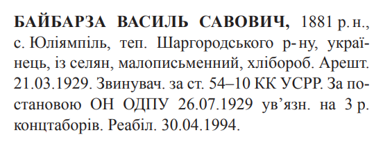 Реабілітований: 30.04.1994 Реабілітовані історією