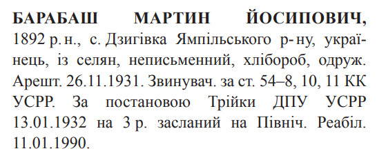 Реабілітований: 11.01.1990 Реабілітовані історією
