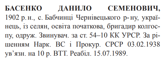 Реабілітований: 15.07.1989 Реабілітовані історією