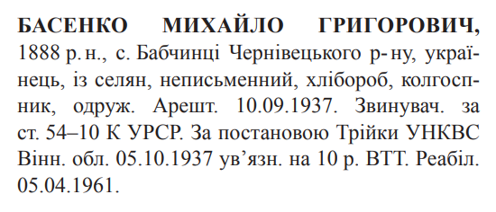Реабілітований: 05.04.1961 Реабілітовані історією