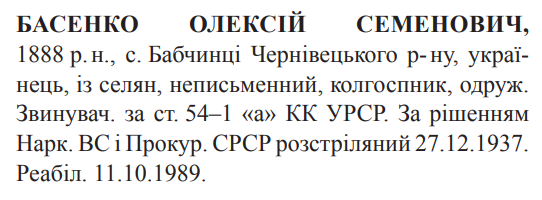 Реабілітований: Вінницьким Прокурором 11.10.1989 Реабілітовані історією