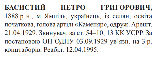 Реабілітований: Вінницьким прокурором 12.04.1995 Реабілітовані історією