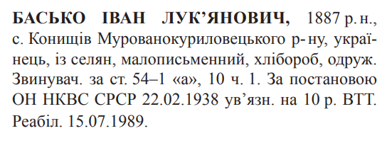 Реабілітований: Вінницьким прокурором 15.07.1989 Реабілітовані історією