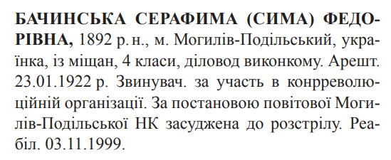 Реабілітована: 03.11.1999 Реабілітовані історією