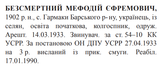 Реабілітований: Вінницькою облпрокуратурою 17.01.1990 Реабілітовані історією