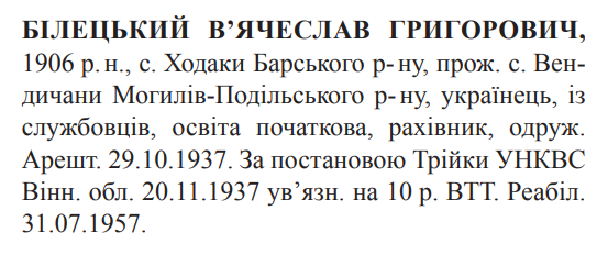 Реабілітований: Вінницьким облсудом 31.07.1957 Реабілітовані історією