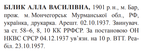 Реабілітована: Верховним судом РСФСР 23.10.1957 Реабілітовані історією
