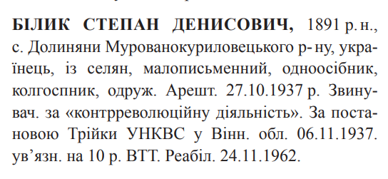 Реабілітований: 24.11.1962 Реабілітовані історією