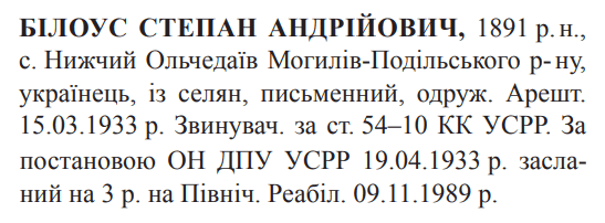 Реабілітований: 09.11.1989 Реабілітовані історією