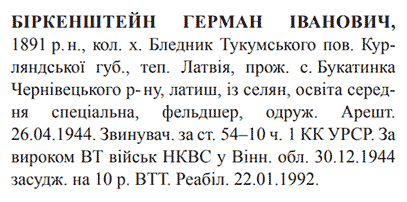 Реабілітований: Вінницьким облпрокурором 22.01.1992 Реабілітовані історією
