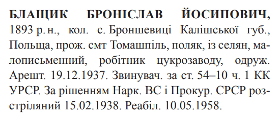 Реабілітований: Верховним Судом УССР 10.05.1958 Реабілітовані історією