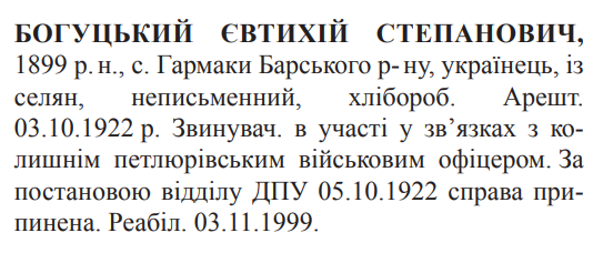 Реабілітований: 03.11.1999 Реабілітовані історією