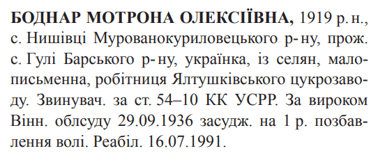 Реабілітована: 16.07.1991 Реабілітовані історією