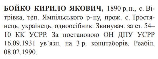 Реабілітований: Вiнницькою облпрокуратурою 08.02.1990 Реабілітовані історією