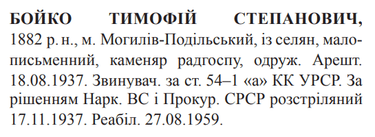 Тимофій Бойко розстріляний 17.11.1937.