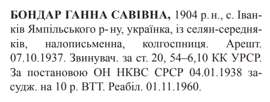 Бондар Ганна Савівна