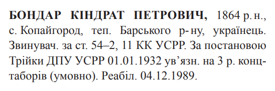 Реабілітований: Вiнницькою облпрокуратурою 04.12.1989 Реабілітовані історією