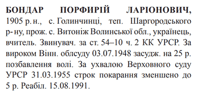 Реабілітований: Вiнницькою облпрокуратурою 15.08.1991 Реабілітовані історією