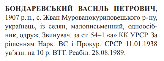 Реабілітований: Вiнницьким облпрокурором 28.08.1989 Реабілітовані історією