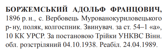 Реабілітований: Вiнницькою облпрокуратурою 24.04.1989 Реабілітовані історією