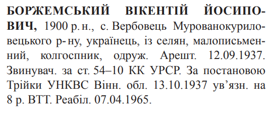 Реабілітований: Вiнницьким облсудом 07.04.1965 Реабілітовані історією