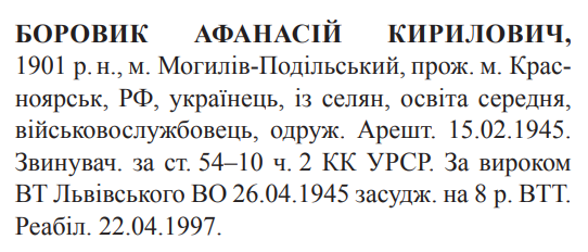 Реабілітований: 22.04.1997 Реабілітовані історією