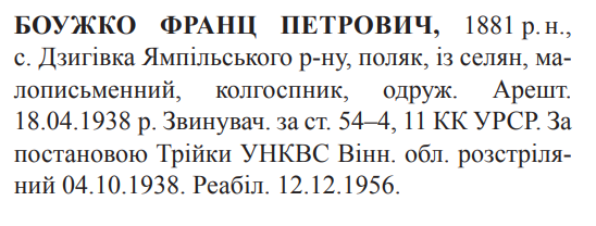 Франц Боужко розстріляний 04.10.1938.