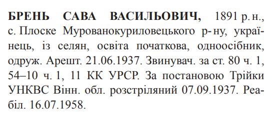 Реабілітований: Вiнницьким облсудом 16.07.1958 Реабілітовані історією