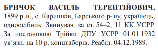 Реабілітований: Вiнницькою облпрокуратурою 04.12.1989 Реабілітовані історією