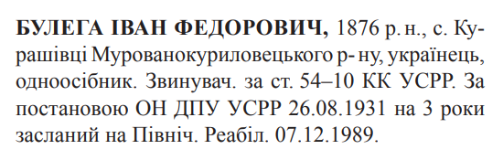Реабілітований: Вінницькою облпрокуратурою 07.12.1989 Реабілітовані історією