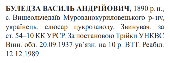 Реабілітований: Вінницькою облпрокуратурою 12.12.1989 Реабілітовані історією