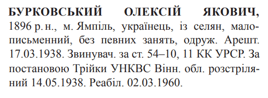 Реабілітований: Вінницьким облсудом 02.03.1960 Реабілітовані історією