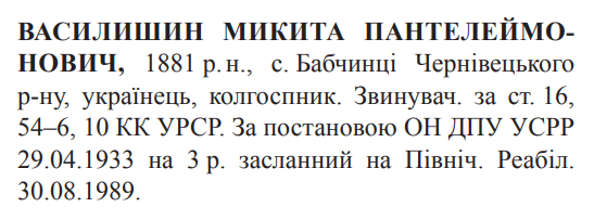 Реабілітований: ВП ПрикВО 30.08.1989 Реабілітовані історією